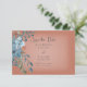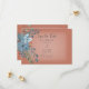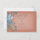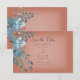 Este casamento salve o cartão de data design apresenta belos florais de cor de ferrugem laranja azul e queimada em um retângulo branco suave colocado sobre fundo de ferrugem laranja queimado. Mole e delicada; perfeita para qualquer estação. Criado pela imprensa simplesmente de farmácia.