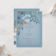 Este design de convite para o casamento apresenta flores lindas, azuis e laranja arruinadas, de canto aquoso cor de laranja em um retângulo branco macio colocado sobre um fundo azul empoeirado. Mole e delicada; perfeita para qualquer estação. Criado pela imprensa simplesmente de farmácia.