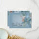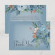 Este design de cartões de agradecimentos de casamento apresenta belas flores de canto de cor de ferrugem laranja azul e queimada em um retângulo branco suave colocado sobre um fundo azul empoeirado. Mole e delicada; perfeita para qualquer estação. Criado pela imprensa simplesmente de farmácia.