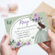 Boho Sage Green Lilac Floral Princess XV Años RSVP Card