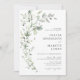 Boho Sage Greenery Botânico Olive Elegante Simples Convite Para Casamento. Um convite botânico minimalista feito no estilo boêmiano com elegante e simples botânicos verdes de vassoura em cor d'água impressa à mão. O fundo de aquarela verde é maravilhoso para casamentos de boho e casamentos verdes. Convites editáveis para primavera, verão, outono (outono) e casamentos no inverno.