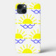 Esta capa de telefone tem um Boho design de meio círculo com linhas para fazer um sol e vieiras para fazer água.