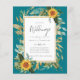 Linda aquarela Amarelo Sunflower e folhas verdes de sábio e folhagem neste país ruidoso boho temático convite de casamento.