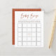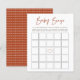 O gráfico "Baby Bingo" em laranja rústico com detalhes do sol da arte de linha, folha de jogos de chá de fraldas com suporte de padrão laranja rústico correspondente.