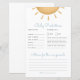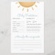 Mostre alguma luz sobre o futuro com este divertido e colorido Jogo de previsão e conselho do Chá de fraldas Boho Sunshine! Os hóspedes vão desfrutar das predições de fazer sobre a chegada da pequena, do aniversário e do peso às primeiras palavras e às primeiras comidas.