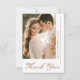 Este Cartões de agradecimentos de Casamento Fotográfico Boho Casado é perfeito para mostrar apreço aos seus convidados de casamento. O estilo minimalista mostra uma foto da noiva e do noivo na frente com as palavras "obrigado você" em uma fonte moderna de texto floral boho. As costas têm espaço para a sua mensagem personalizada e uma segunda fotografia.