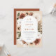 Uma boêmia terracotta casou flores de aquarela com elegante cartazes de caligrafia. O texto preto e outros recursos deste modelo de convite de casamento podem ser personalizados.