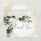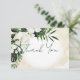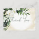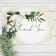 Este design de cartões de agradecimentos de casamento apresenta um belo, esmagador verde-trópico e florais brancos num fundo de cor de água de areia amarela macia. Perfeito para o casamento de destino ou praia. Use estes títulos ou altere-os para corresponder às suas informações. Criado pela imprensa simplesmente de farmácia.