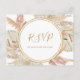 Este boho botânico tropical | cartão postal RSVP de casamento é perfeito para seu elegante casamento floral rústico, verde, pêssego, rosa dourado. Design apresenta um quadro de ouro ou buquê com a relva pampas rosa-pincel moderna, simples sábio, marfim, folha de palma de champanhe e verde clássico de praia. As flores podem incluir rosa-rosa e orquídea. O design é ideal para uma típica vintage terracotta, bege, ferrugem, inverno, primavera, casamento outono. Por favor, encontre outra papelaria de casamento no resto da coleção.