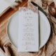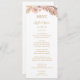 Este boho botânico tropical | o menu janto de casamento é perfeito para o seu elegante casamento floral rústico, verde, pêssego, rosa dourado. Design apresenta um quadro de ouro ou buquê com a relva pampas rosa-pincel moderna, simples sábio, marfim, folha de palma de champanhe e verde clássico de praia. As flores podem incluir rosa-rosa e orquídea. O design é ideal para uma típica vintage terracotta, bege, ferrugem, inverno, primavera, casamento outono. Por favor, encontre outra papelaria de casamento no resto da coleção.
