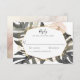 Com o estilo moderno do boho, este cartão RSVP de casamento tropical tem a folhagem da folha Monstera com uma orquídea de pêssego solteiro pintada em aquarelas. Um traço triplo geométrico em dourado cercado rodeia os elementos de texto do design. Os resultados são uma bela escolha para casamentos de praia ou litoral, casamentos com tema tropical, casamentos de destino e muito mais. Planeje seu casamento de sonho em volta desta adorável design.