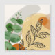 Design de boho botânico com cores verdes, laranja e bege e elementos de aquarela.