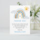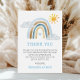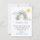 Mostre seu apreço com este cartão de obrigado-você! Apresentando um arco-íris de cor aquática macia, nuvens fofinhas e um sol alegre, esta design é perfeita para agradecer aos convidados por seu amor e presentes pensativos. Uma maneira doce e elegante de expressar sua gratidão depois do seu chá de fraldas!