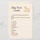 "Desafie seus convidados com este Cartão de Jogo de Palavra de Palavra de Bebê Ocidental divertido e na moda! Essa atividade envolvente é perfeita para um quebra-gelo chá de fraldas, com ilustrações adoráveis de cavalo de balanço e grama de pampas para um toque temático. Convidados desfazem palavras comuns relacionadas a bebês (por exemplo, 'RLTLBOET' = BOTTLE) para ganhar um prêmio. O cartão é projetado em nossa paleta de bronzeados e cremes suaves, que é neutra em termos de gênero, e o fazer é um ajustado excelente para qualquer comemoração rústica ou selvagem do oeste. Como jogar: os convidados correm para desembaralhar todas as palavras relacionadas ao bebê na lista. O primeiro convidado a descodificar corretamente todas as palavras (ou a maioria das palavras num determinado horário) ganha um prêmio! Esta atividade é uma adição divertida e fácil de organizar ao seu chá de fraldas de vaqueiro ou vaqueira!"