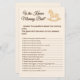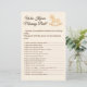 "Ponha seus convidados à prova com esta diversão e engajando Boho Western 'Who Knows Best' Game Card! Esta é uma atividade maravilhosa que encoraja uma conversa divertida e celebra a "Mãe a Ser", enquadrada por nossa doce ilustração de cavalo balançante e grama de pampas. Os convidados respondem a perguntas sobre a vida, as preferências e a personalidade da futura mãe. O cartão é projetado em nossa paleta de bronzeados e cremes suaves, que é neutra em termos de gênero, fazer-o um ajustado perfeito para uma celebração russa ou selvagem do oeste. Como jogar: o host distribui as cartas e uma caneta para cada convidado. Os convidados respondem às perguntas sobre a "Mãe a Ser". O anfitrião lê as respostas corretas (fornecidas antecipadamente pela Mamãe a Ser), e o convidado com as respostas mais corretas ganha um prêmio! Esta é uma adição sincera e hilária ao seu chá de fraldas de vaqueiro ou de vaqueira!"