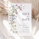 Boho Whimsical Wildflower Sage Greenery Botânico Elegante Simples Casamento De Jardim Guarda O Convite Para A Data. Convite minimalista de buquê de flor silvestre, estilo boêmio, com elegante e simples botânicos verdes florais de folha verde, em cor d'água impressa à mão. A cor verde de fundo sage é maravilhosa para casamentos de boho e casamentos verdes. Convites editáveis para primavera, verão, outono (outono) e casamentos no inverno.