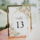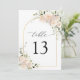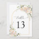 Boho Cream White Rose Floral Sage Green Botanical Dourado Arch Elegante Número da Mesa de Casamento. Buquê de rosa branca boêmia com falso modelo de mesa de arco de ouro com flores brancas elegantes e natas e botânicos verdes em cores d'água impressas à mão. O fundo verde-aquarela sage é perfeito para casamentos românticos boho e casamentos florais brancos. Modelo simples e imprimível para primavera, verão, outono (outono) e casamentos no inverno.
