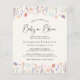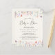O convite para chás de fraldas amigável ao orçamento de creme claro apresenta aquarelas de flores silvestres boho e "Baby in Bloom" escrito em um roteiro contemporâneo de na moda.