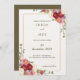 Convite para Casamento de Flores Vermelhas Escuras Este Convite para Casamento simples e elegante apresenta lindas ramificações de folha de cor d'água com eucalipto e foi emparelhado com uma caligrafia balística e uma fonte serif de classe em ouro e cinza. Para fazer alterações avançadas, selecione a opção "Clique para personalizar mais" em Personalizar este modelo.
