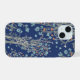 A beautiful boho phone case with wildflowers in light blue and orange on a navy textured background.