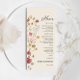 Boho Wildflower Wedding Menu. Este convite de casamento na moda e elegante apresenta uma linda cor d'água pintada manualmente Flores selvagens. Encontre itens correspondentes na Coleção de Sonhos de Flor Branco.
