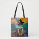 Uma bolsa de tote de bruxa-boho. O verso é preto com o texto: Bruxa. Isto é por atitude.