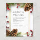 Lindos bagos vermelhos e cones rústicos de pínus aparecem neste casamento no inverno que faz parte de uma coleção maior que inclui convites para casamento de orçamento, salvar datas, rsvps, etiquetas, presentes, papelão e muito mais. Para obter um guia de planejamento de casamentos no inverno GRATUITOS, visite weddingdesignchic.com.