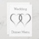 Design de corações cor de prata do cardápio de casamento. Você pode personalizar este cardápio de casamento de cor prateada com seus detalhes de casamento. Se precisar de ajuda para personalizar, entre em contato conosco através do link desta página. Corações de prata design menu de casamento personalizado