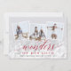 O cartão com fotos de feriado elegante apresenta três fotos quadradas em um layout de colagem, com uma cobertura de luz bokeh para um visual festivo e borbulhante. "Maravilhas de seu amor" está sobreposto em uma vibrante escrita vermelha de amora e letra de bloco, com seus nomes e o ano abaixo. Cartões reversos para um fundo botânico vermelho festivo e padronizado.
