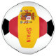 Bola de futebol com um lado da bola feita nas cores vermelha e amarela da bandeira espanhola e decorada com o casaco de braços. O texto vermelho lê Espanha e pode ser personalizado para ler o que você quer.