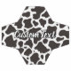 Padrão de fundo de vaca sem costura, preto e branco. Texto personalizado.