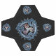 Desenho de Mandala representando um anel de golfinhos com ondas centradas por um trio de símbolos yin yang.