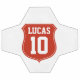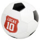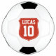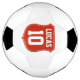 Bola de futebol personalizada com número de camisa ou idade. Uma bela ideia de presente de Natal ou Aniversário para rapazes e raparigas desportistas que adoram jogar futebol / futebol. Design de tipografia atlética com o logotipo emblema do escudo vermelho. Adicione seu próprio nome, citação esportiva ou monograma. Faça seu próprio favor divertido para uma Festa de aniversário infantil. Adicione seu próprio texto para neto, filho, neta, neta, filha, sobrinho, primo etc. Excelente como obrigado, você dá presente para o futebol treinador, mãe de futebol, pai de futebol etc.