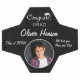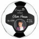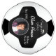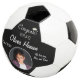 Parabéns modernos Formando Graduação Foto Futebol. Bola de futebol personalizada com boné de formatura, texto personalizado e uma fotografia num quadro redondo sobre fundo preto. Um presente de excelente e uma bola de futebol para um formando que adora esportes.