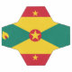 Bandeira de Granada. A bandeira nacional de Granada foi adotada após a independência do Reino Unido, em 7 de fevereiro de 1974. As seis estrelas na fronteira vermelha significam as seis paróquias do país, com a estrela central, cercada por um disco vermelho, em pé para a capital, a do Santo George. O símbolo no assento representa uma capa de noz-moscada, uma das principais culturas de Granada. Representa também uma ligação com o antigo nome de Granada, que era a "Ilha de Especiarias". A combinação de cores vermelho, ouro e verde, na bandeira é representativa da identidade africana do país. Vermelho significa coragem e vitalidade, amarelo para sabedoria e calor, e verde para vegetação e agricultura.