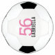 Número cor-de-rosa rosa e nome personalizado impresso em uma bola de futebol.