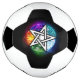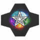 Pentagrama luminoso desenhado artificialmente com cinco elementos mágicos, água, terra, fogo, astral, ar sobre fundo negro. Pentagrama Wiccan. Wicca