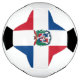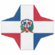 A bandeira da República Dominicana apresenta uma cruz branca centrada que se estende até as bordas e divide a bandeira em quatro retângulos - os de cima são azuis (lado do assento) e vermelhos, e os de baixo são vermelhos (lado do assoalho) e azuis.