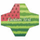Bandeira de melancia vermelha e verde com listras e sementes. Texto personalizado.