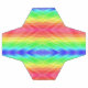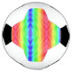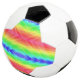 "Soccer ball featuring a vibrant rainbow geometric pattern on white panels, with contrasting black pentagons. Below is the pattern displayed flat."