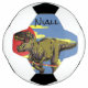 Nesta bola de futebol está um dinossauro esverdeado com a boca esboçada mostrando dentes afiados de lâmina e segurando uma espada com seus pequenos braços esperando pela batalha. Perfeito para aqueles pequenos que amam o espírito dos dinossauros. Pode ser personalizado com um nome para torná-lo exclusivamente seu.