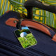 bola de golfe com etiqueta de bagagem e trabalho d