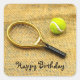 Bola de tênis e raquete no adesivo de Aniversário marrom