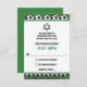 Esta placa de RSVP do Bar Mitzvah, tema de futebol, coordena-se com o convite do Soccer Balls no Bar de grama Mitzvah. Ele tem uma banda de grama verde ao longo de cima e de baixo com uma série de bolas de futebol preto e branco ao longo da largura da placa. Este cartão de resposta de futebol tem uma mistura de letras verdes e pretas em fontes que correspondem ao convite e o verso é verde com uma bola de futebol preto e branco maior com as iniciais do Bar Mitzvah impressas em verde.