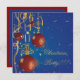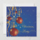 Um convite elegante de Natal, com Enfeites de natal ouros, fitas e estrelas cintilantes sobre fundo azul. Personalize com seu texto. Perfeito para a sua empresa/empresa/escritório.