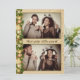 Substitua suas fotos ao lado da borda de feriado e da folhagem das bolas de Natal e deseje aos seus amigos e familiares - um feriado feliz, um feliz ano novo ou qualquer texto personalizado ou saudação alternativa... deseja Feliz ano novo com uma mensagem curta no verso