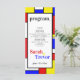 Programa de eventos - Um design divertido e divertido que é tão divertido quanto você - um olhar nostálgico para os anos 60 com uma legal fonte em negrito emparelhada com cores primárias de amarelo, azul e vermelho esboçado em preto em formas geométricas no estilo de Mondrian. Fácil de personalizar com seus detalhes específicos. © WhimsicalArtwork criada para o BarefootBride™