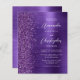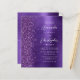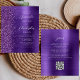 A borda esquerda deste elegante convite de casamento moderno apresenta uma borda suja e falsa roxa. O texto personalizável combina manuscrito branco, fontes em copperplate e itálico em um fundo de metal escovado roxo e falso. O verso fornece espaço para detalhes do casamento em um fundo de metal escovado roxo, juntamente com um código QR que os convidados podem digitalizar para visitar seu site e RSVP, o que economiza o custo de imprimir e enviar cartões RSVP separados.