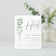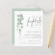 Um valor para o alternativo do ORÇAMENTO em tamanho menor de 4,5 x 5,6" de semirbrilho de 110 lbs, que é de espessura semelhante a um cartão postal (no entanto, não é adequado para uso como cartão postal). POR FAVOR, OBSERVE QUE HÁ UM convite por folha. Orçamento Eucalyptus Script 50th Aniversário. Estilo moderno minimalista, com água verde fluindo para baixo do lado esquerdo e texto para a direita. Um roteiro manuscrito para o 50º e o resto do texto que você pode personalizar facilmente.