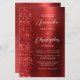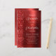 A borda esquerda deste elegante convite de casamento moderno apresenta uma borda falsa vermelha. O texto personalizável combina manuscrito branco, fontes em copperplate e itálico em um fundo vermelho de metal escovado. O verso fornece espaço para detalhes do casamento em um fundo de metal escovado vermelho, junto com um código QR que os convidados podem digitalizar para visitar seu site e RSVP, o que economiza o custo de impressão e envio de placas RSVP separadas.